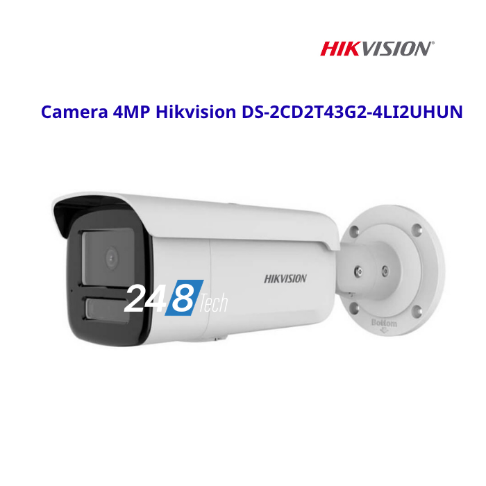 Hikvision DS-2CD2T43G2-4LI2UHUN là dòng camera thân trụ cao cấp của Hikvision, được thiết kế dành cho nhà ở, biệt thự, kho hàng, xưởng sản xuất, bãi xe hoặc những khu vực cần giám sát ngoài trời diện tích lớn.