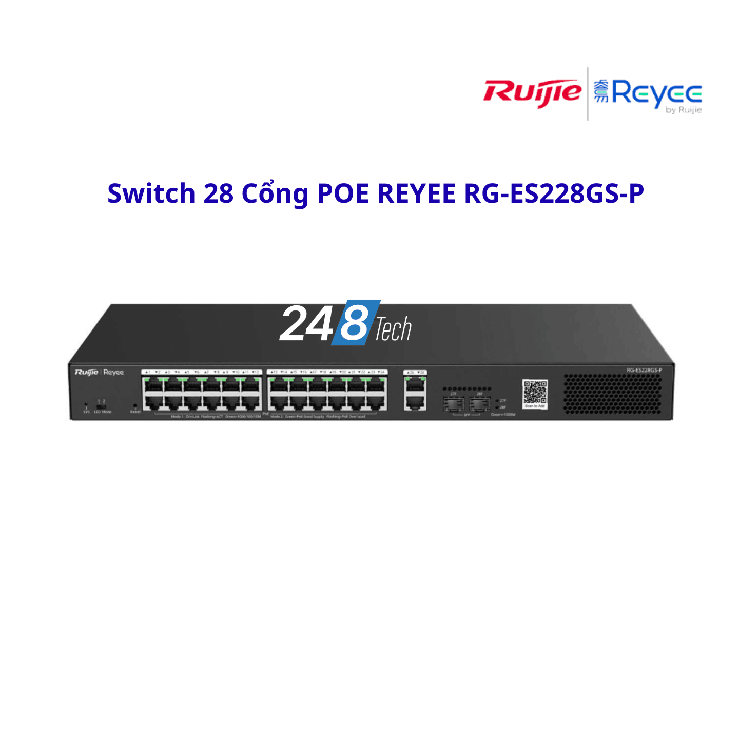 Switch 28 Cổng PoE REYEE RG-ES228GS-P – Giải Pháp Mạng Doanh Nghiệp Công Suất Lớn, Quản Lý Cloud Thông Minh